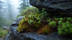 Su secreto reside en una tolerancia extrema a la desecación: pueden perder casi toda su agua y rehidratarse completamente en cuestión de horas cuando llueve. Son, en esencia, indestructibles en ese entorno hostil. Los musgos, aunque algo más exigentes, llegan poco después, aprovechando las mínimas irregularidades de la roca donde se acumula algo de polvo.