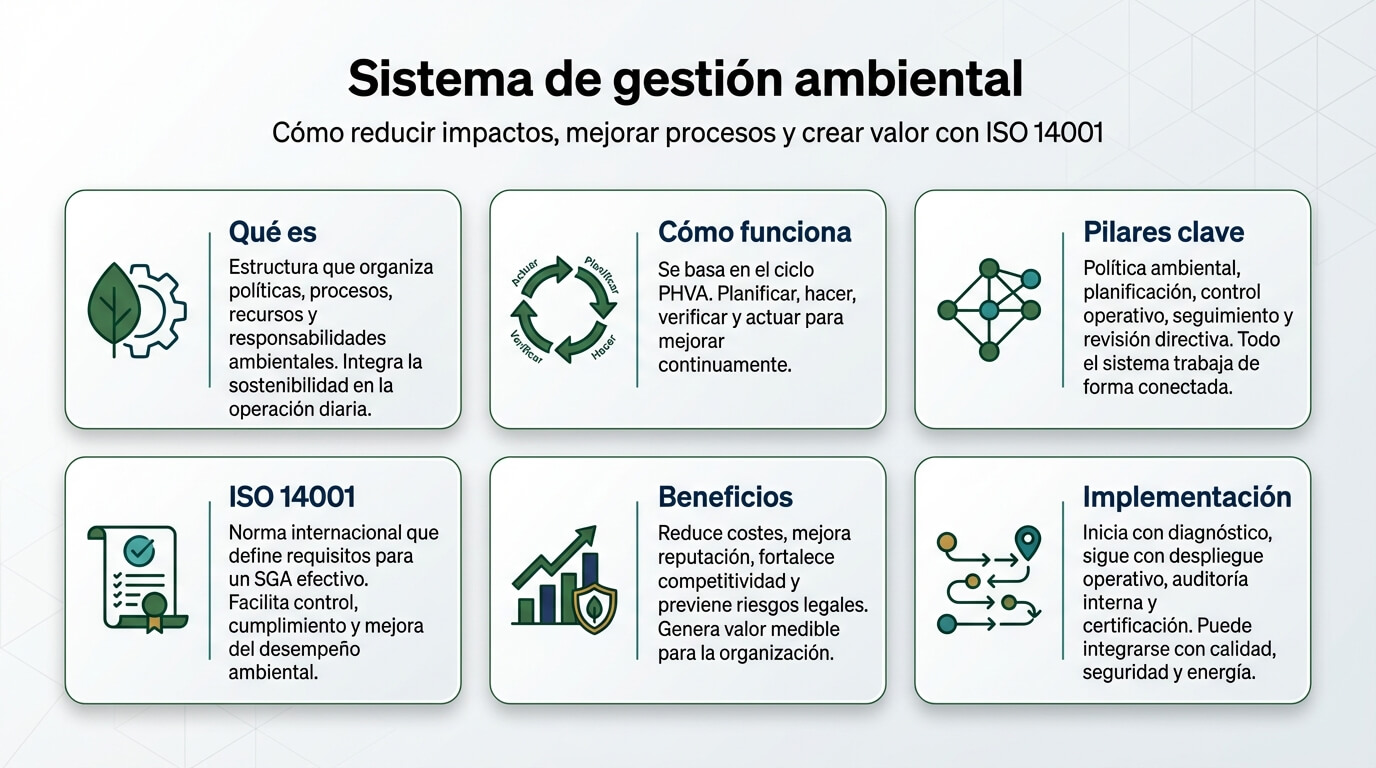 A lo largo de este artículo, descubrirás qué es realmente un sistema de gestión ambiental, cómo funciona, por qué normas como ISO 14001 se han convertido en referencia global y, lo más importante, cómo puede transformar tu organización desde dentro, generando valor medible más allá del simple cumplimiento normativo.