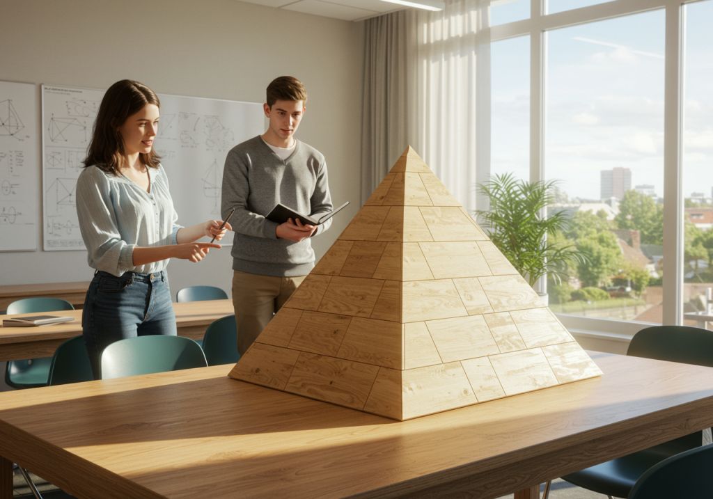 Entre las propiedades clave de la pirámide triangular destaca que todas sus caras laterales son triángulos que se encuentran en planos diferentes, convergiendo en el vértice superior. Esta característica genera un volumen definido que puede calcularse con precisión usando la fórmula Volumen = (1/3) × Área de la base × Altura. La altura corresponde a la distancia perpendicular desde el vértice hasta el plano de la base triangular. Como consecuencia, su volumen permite entender mejor conceptos de capacidad y espacio. Además, los ángulos de las caras y las aristas determinan la simetría y estabilidad del sólido, elementos esenciales para aplicaciones prácticas.